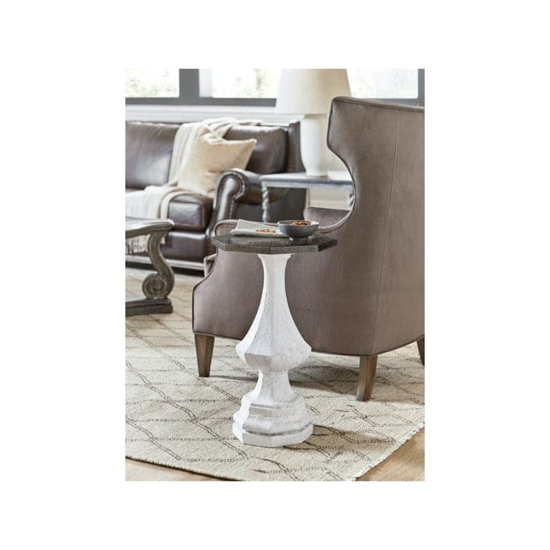 A chic two-tone finish gives a nostalgic yet casual aesthetic to the Traditions Drink Table. Featuring an octagon-shaped top and a convenient, compact 14W x 14D footprint, the table pairs the soft white Magnolia finish on the base with Maduro, a rich brown with grey undertones, on the top. Inspired by a two-week trip through Europe in search of architecture and antiques full of vintage character, Hooker Furniture introduces the Traditions Collection. Targeting a design-oriented consumer with a sophisticated style, the whole home collection – one of the largest in company history – uses familiar forms to present a nostalgic, yet comfortable aesthetic. Layered with fresh elements, the group offers an updated presentation that speaks to a storied past, yet easily transitions into today’s interiors.