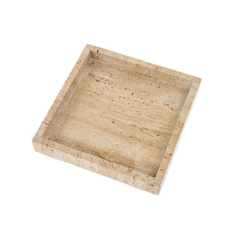 Carved from solid stone, the Travertine Trays look at home in the bathroom, on the vanity, entryway, or bedside, and are great for organizing cosmetics, jewelry, perfume bottles or coffee table objects. Made from natural stone, they are praised for their irregular striations and colour variations, and each handcrafted tray will be one-of-a-kind.