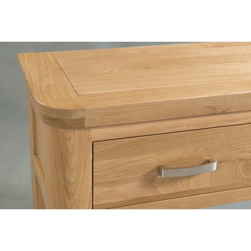 A stunningcollection of contemporary dining and occasional furniture with a unique curved finish. Thiscollectionoffers a striking range for many living room designs and entertainment rooms. A solid oak with oak veneer range with curved edges and curved legs combined with dovetail joints offers the collection that will be the centre piece of any room setting. With a choice of metal and wood handles included.this collectionbrings a fresh, modern design thats offers an abundance of character.