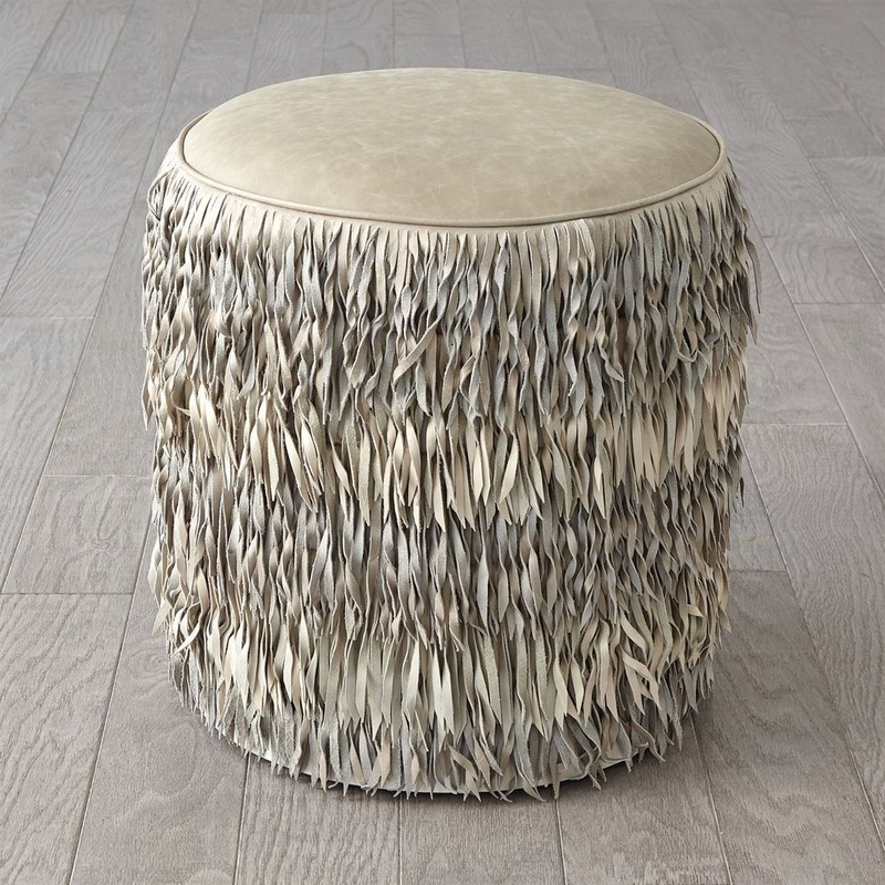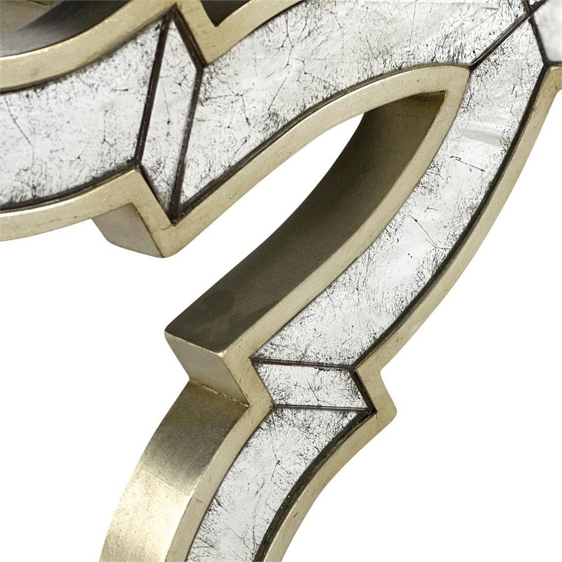 This single bench with eglomise and champagne moldings is upholstered in a neutral fabric.