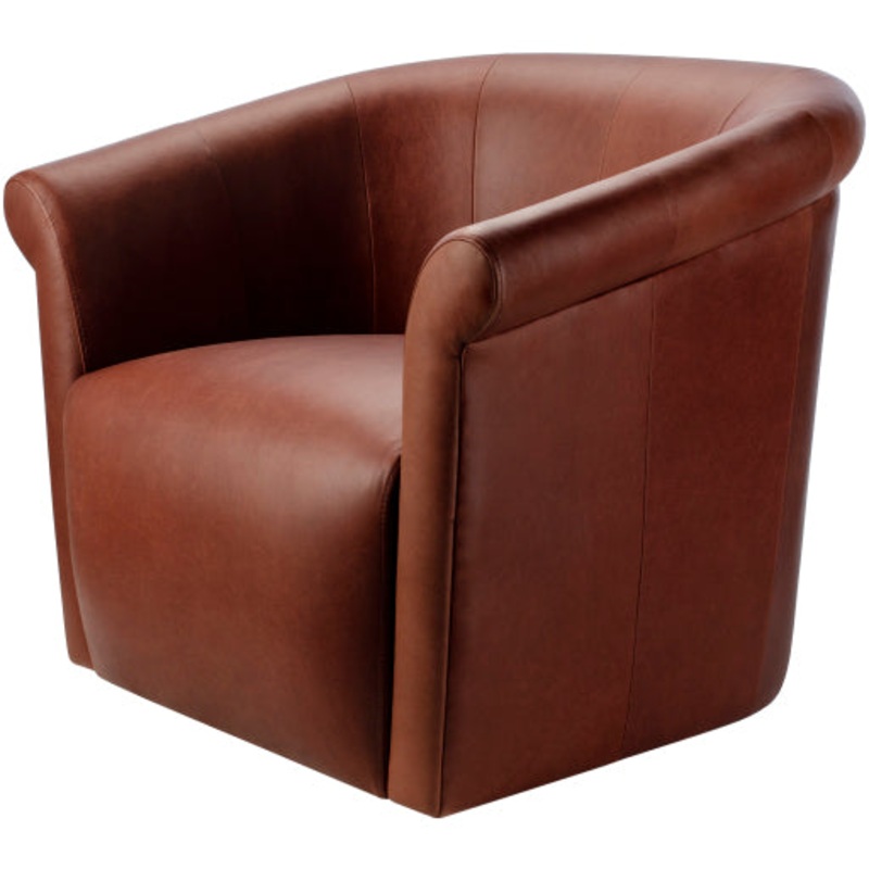 Material: Upholstery: Leather; Base: Stainless Steel; Fill: 70% Polyurethane Foam, 30% Mixed Feather