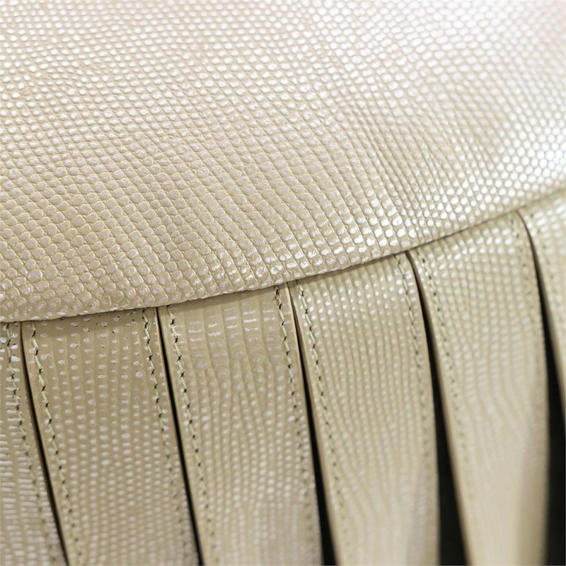 The Twirl Ottoman offers a sophisticated seating option with rich visual texture. Wrapped in taupe leather, its sides feature a striking arrangement of twisted straps, adding depth and dynamic movement to any space.
