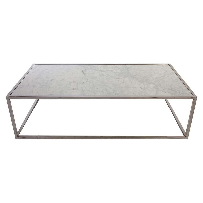 Featuring clean lines and beautiful carrara marble this coffee table is the perfect centerpiece for any living space. The stainless steel frame has been expertly welded to ensure stability and durability, then polished to a mirror shine. The marble tabletop has wonderful natural veining, with no two slabs being exactly the same. This piece will look great in modern and contemporary spaces alike.