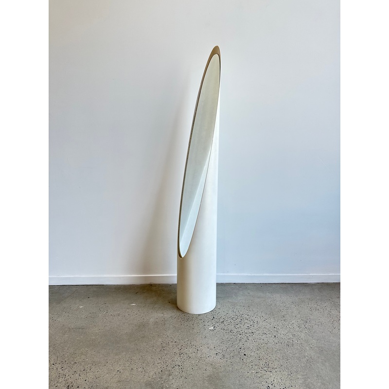 “Unghia” mirror designed by Rodolfo Bonetto. Unghia means nail in Italian, although the mirror is also referred to as a lipstick mirror. This piece would look great in your space age,modern or eclectic room.