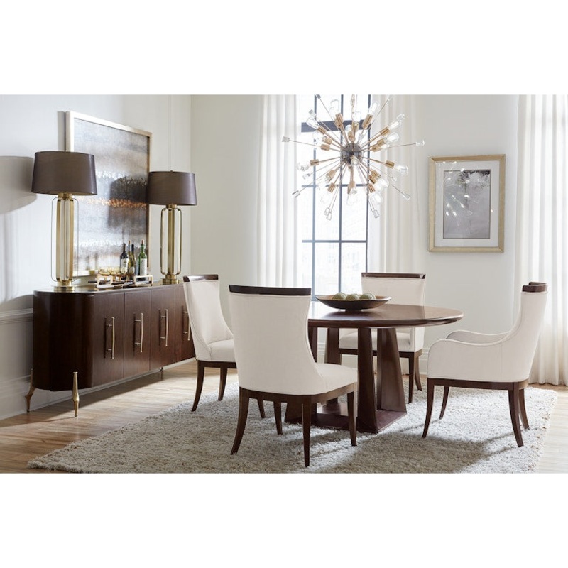 Hooker Furniture’s Bella Donna collection is characterized by its elegant forms, rich with shape and movement. Channeling Sophia Lorens timeless sophistication and style as its muse, Bella Donna appeals to the classic consumer, but with a little edge to their design style. Caviar, the primary finish for Bella Donna, has a deep translucent tone on rich cathedral cherry veneers. Akoya, representing the purest white pearls found in the world, is a perfect accent finish, adding sophistication and a bit of glam. Unique design details include reeding on selected pieces that create a curtain effect, reverse breakfront serpentine silhouettes, glass tops, and exposed metal legs. Adding the finishing touch, this whole home collection features custom designed hardware in a champagne finish, including both traditional and modern forms.