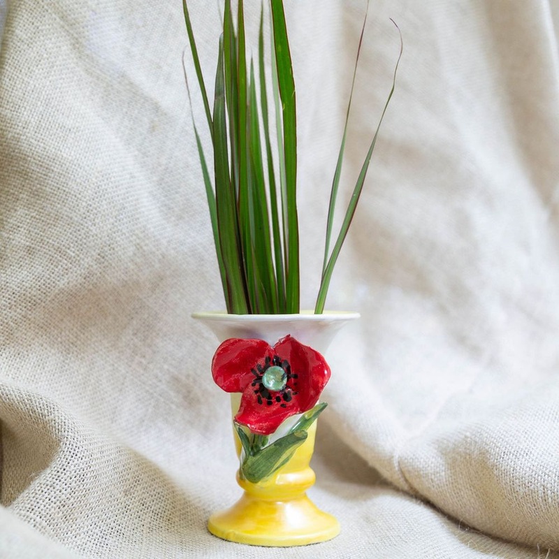 Be the first to review “Vase, Small White with Red Poppy Flower”