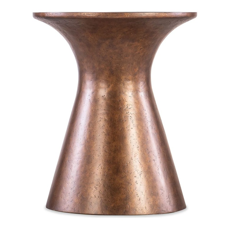 Description: In a hand-forged, craftsman-like design, the Barron Accent Table is offered in an hourglass shape and textured brown finish with distressing and a raised edge on the top. While large in style, it is a compact 20 inches round.