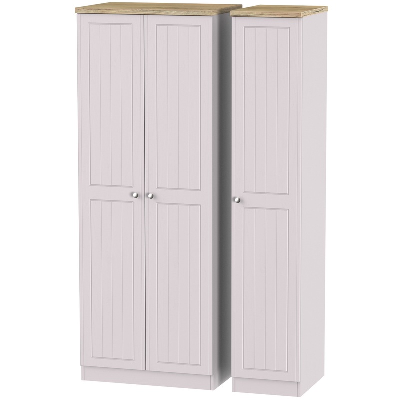 Vienna 3 Door Tall Wardrobe Cream Ash with Bardolino Top