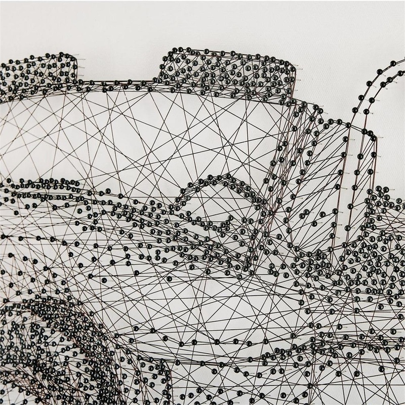 Vintage Threaded Cruiser is a stunning love letter to the power and elegance of an iconic vehicle from years past. Shown in breathtaking detail, the car is brought to life through an intricate network of push pins and thread. This hand-made piece is held within a black wood gallery frame and may only be displayed from a horizontal orientation.