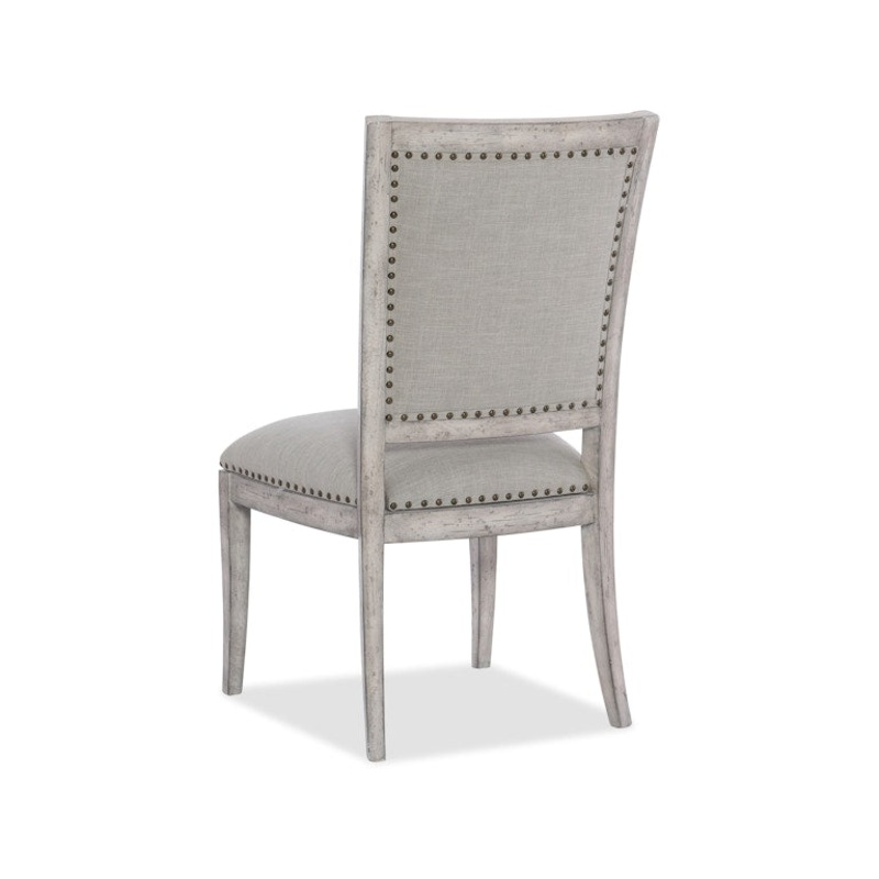 In a lyrical neutral color palette of creams, whites, taupes and grays, the Vitton Side Chair combines the Mercantile White antique gray-white finish with the soft gray Antwerp 100% linen fabric seat and back and bronze decorative nailheads. Inspired by the Belgian design aesthetic, Boheme expresses the elegance of simplicity and the essence of comfort. Lyrical and intentional, Boheme offers a subtle array of three antique gray-white finishes, speaking to Belgium’s penchant for all things gray. A neutral palette of gray, blue, white and soft brown blends lyrically with an array of textures and shapes to create Boheme. The poetic beauty of each piece is unveiled in Boheme through texture, color, piece character and artistic shapes.