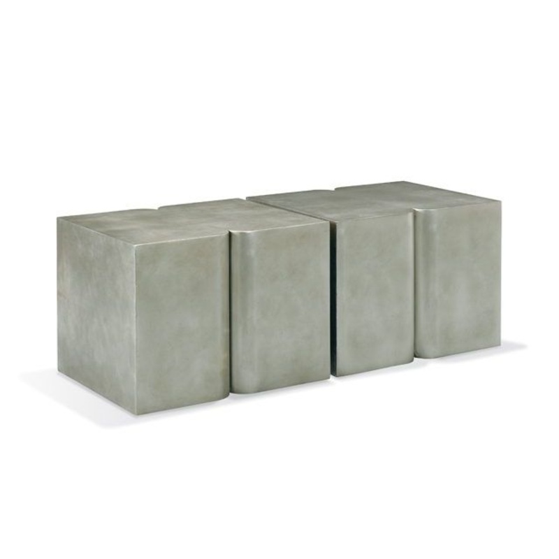 The silver leaf finish accents the sculptural details of this very stylized accent table designed to stand alone or be bunched as a cocktail table opportunity.