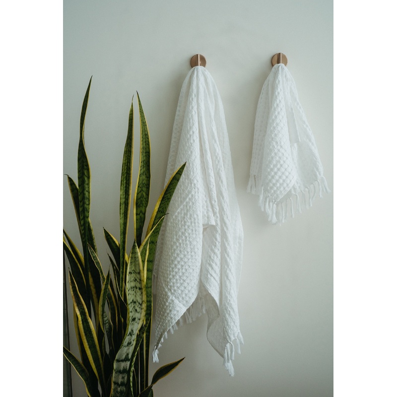 Wonderfully light and airy, the Waffle Hand Towel, is made of soft and absorbent waffled cotton and finished with tassel fringe. Crafted in the Indian tradition, its exceptionally absorbent and quick-drying texture help make everyday feel like a spa day. Machine Washable.