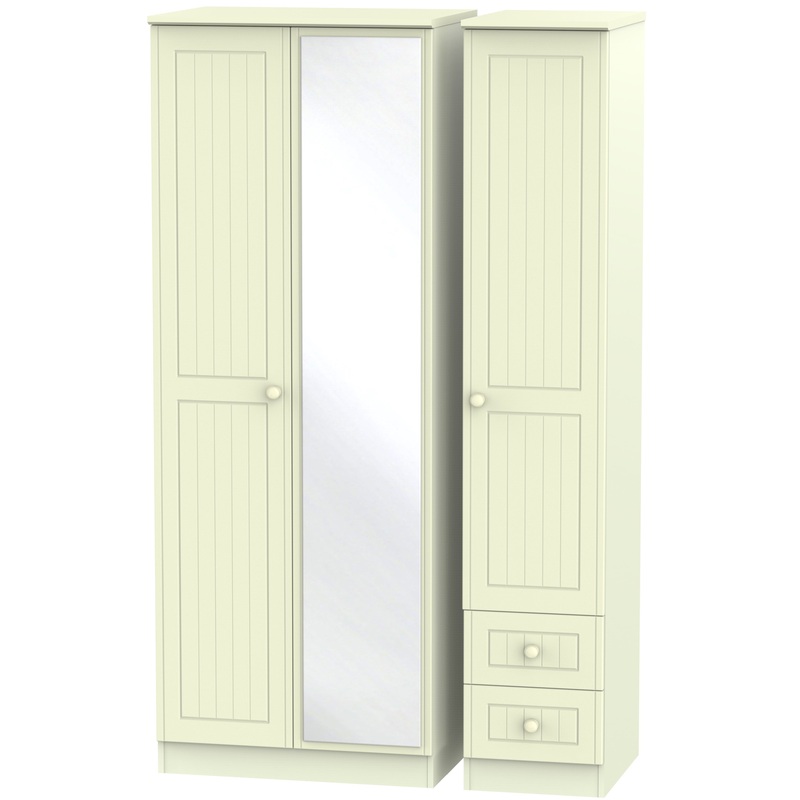 Warwick 3 Door 2 Right Drawer Tall Mirror Wardrobe Cream