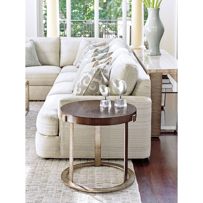Marketing Copy: Contemporary design today has taken on a decidedly casual tone. The look is clean and sophisticated, thoughtfully curated with great emphasis on comfort. Visual impact is achieved through statement pieces and an elegant blending of finish and materials.Crafted from cathedral cherry veneers and mahogany solids, design in Laurel Canyon feature strong architectural lines in a mocha finish with soft gray undertones. Metal bases are finished in hand-burnished silver leaf, with silver travertine tops.Plush upholstered seating offers generous scale, highlighted by textural fabrics, contemporary patterns and soft neutral palettes. The vibe is casual, but the design aesthetic is one of refined self-expression, delivering a truly remarkable look.
