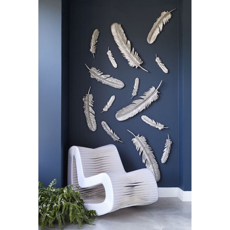 Bringing nature indoors is one of the elemental moves we are adept at making when we are designing our furnishings. With the asymmetrical shapes that emulate real bird feathers that have been thoroughly preened, our Feathers Small Silver Wall Art Set is made of composite in a luminous silver leaf finish. Arching toward each other, the decorative wall sculptures also vary slightly in size to create a textural installation that will bring beauty to any room.