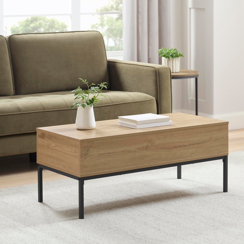 This stylish coffee table effortlessly transforms into a functional workspace. With a lift-top design and hidden storage, it’s perfect for working from home or enjoying a cosy night in. The lift-top design is ideal as a desk for using your laptop or enjoying a meal from the sofa.
