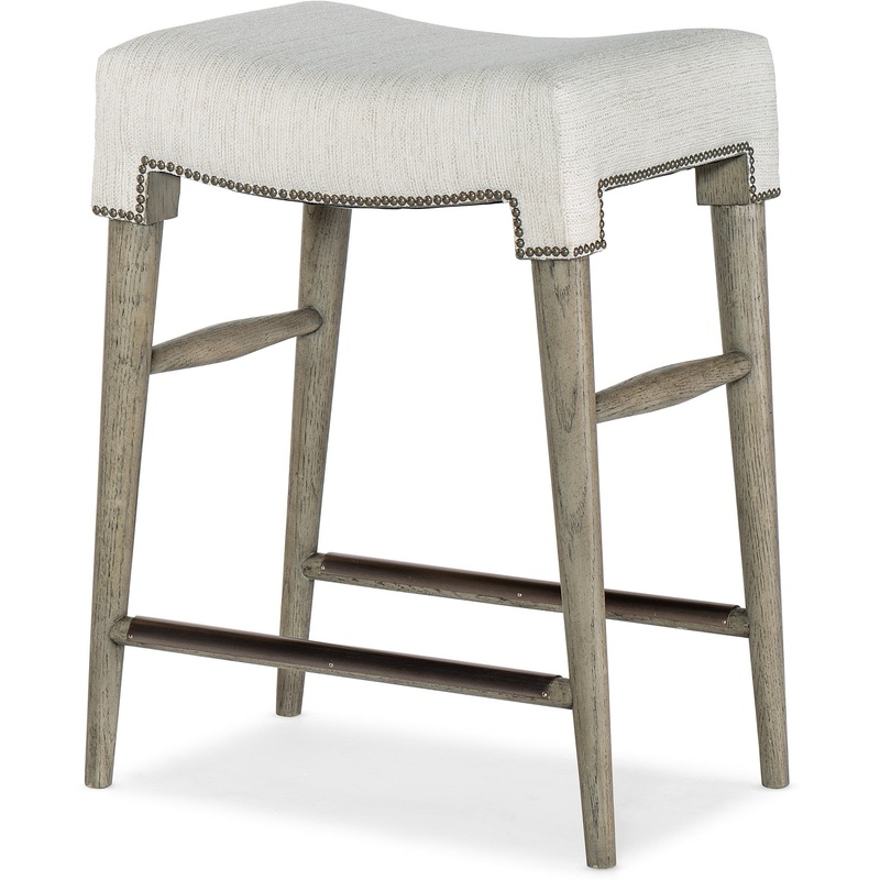 Almond-finished parawood frames cushioned seating upholstered in high-performance fabric. Perfectly sized for the counter.