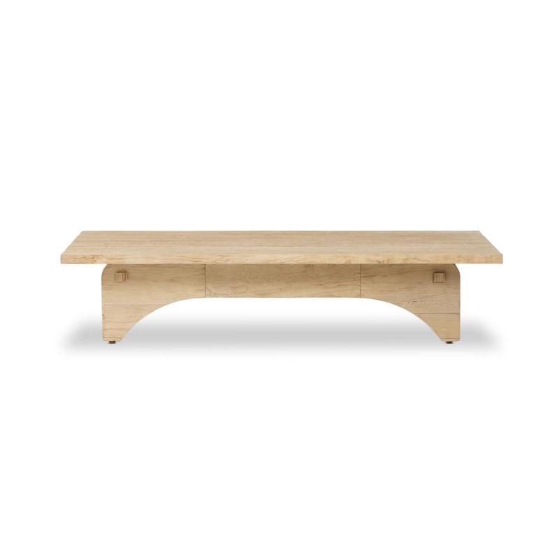 Bleached alder shapes a character-rich coffee table with Wabi Sabi vibes. Joinery pulls through stretchers, with groove detailing on legs, for an artisan feel.