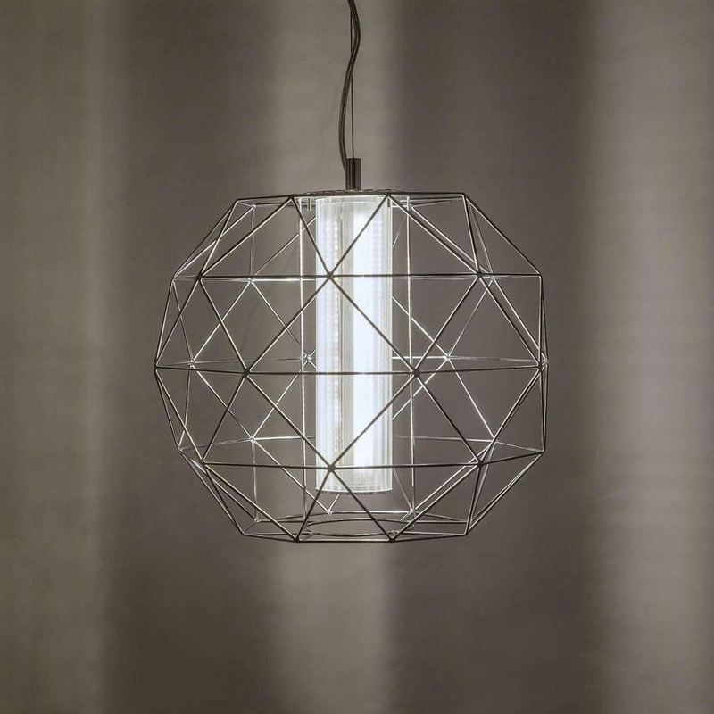 Open and airy this pendant lamp will light up your space in geometric style. An expertly welded wire frame creates intriguing designs that surround the glass diffuser at the center. The highly polished finish will catch and reflect the light for added shine. The light from one energy-efficient LED bulb will provide long-lasting ambient lighting for your interior.