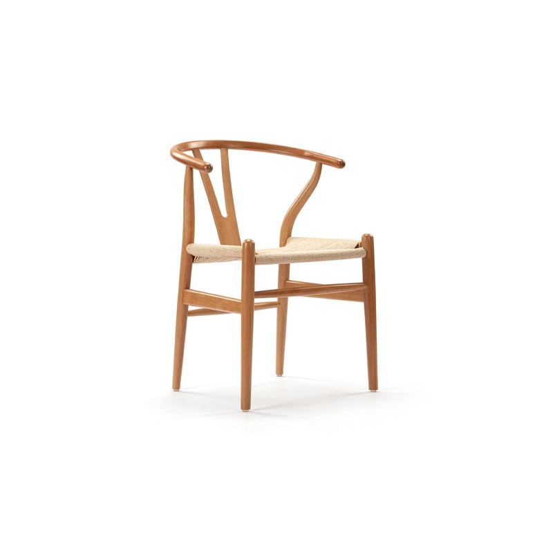 The Wish Chair isan icon of mid-century Danish design due to the distinctive shape of the back-rest support. The chairs design is a masterpiece of stunning simplicity.With its curved back legs tapering to join the back rail, its silhouette remains a well-loved design. The WishChair is a minimalists delight, with a light but strong and elegant frame coupled with a paper-cord seat thats comfortable to sit on.