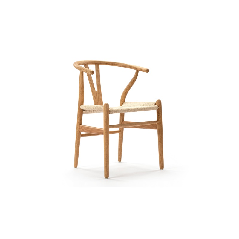 The Wish Chair isan icon of mid-century Danish design due to the distinctive shape of the back-rest support. The chairs design is a masterpiece of stunning simplicity.With its curved back legs tapering to join the back rail, its silhouette remains a well-loved design. The WishChair is a minimalists delight, with a light but strong and elegant frame coupled with a paper-cord seat thats comfortable to sit on.