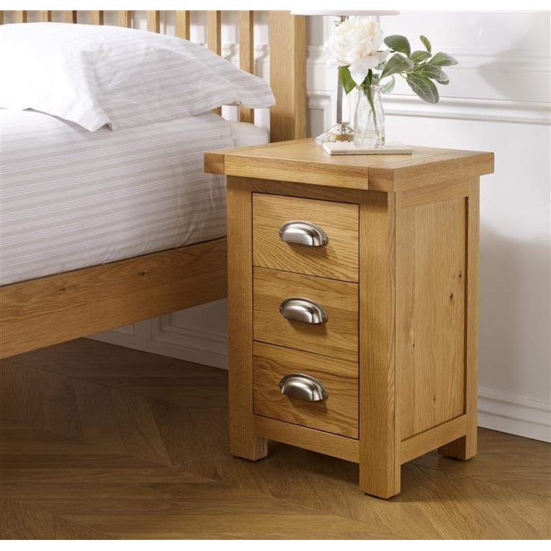 The perfect ideal spot for a bedside lamp, this small three drawer bedside is practical for separating your items among the three spacious drawers.