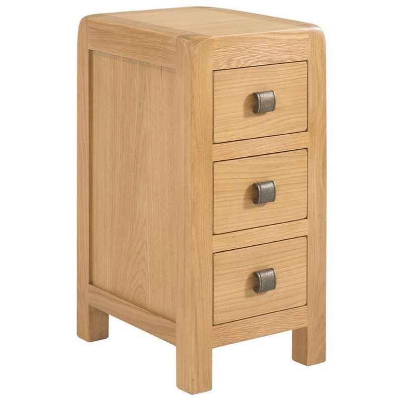 The perfect ideal spot for a bedside lamp, this small three drawer bedside is practical for separating your items among the three spacious drawers.