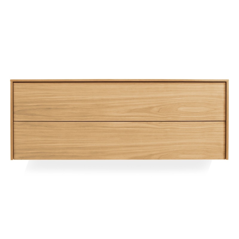 Wall-mounted two-drawer cabinet maximizes functional storage and provides a custom-looking solution without the hassle of finding someone to build it. In walnut or white oak with push latch drawers. Pair with companion door, desk and shelf units to create a full-on storage masterpiece.
