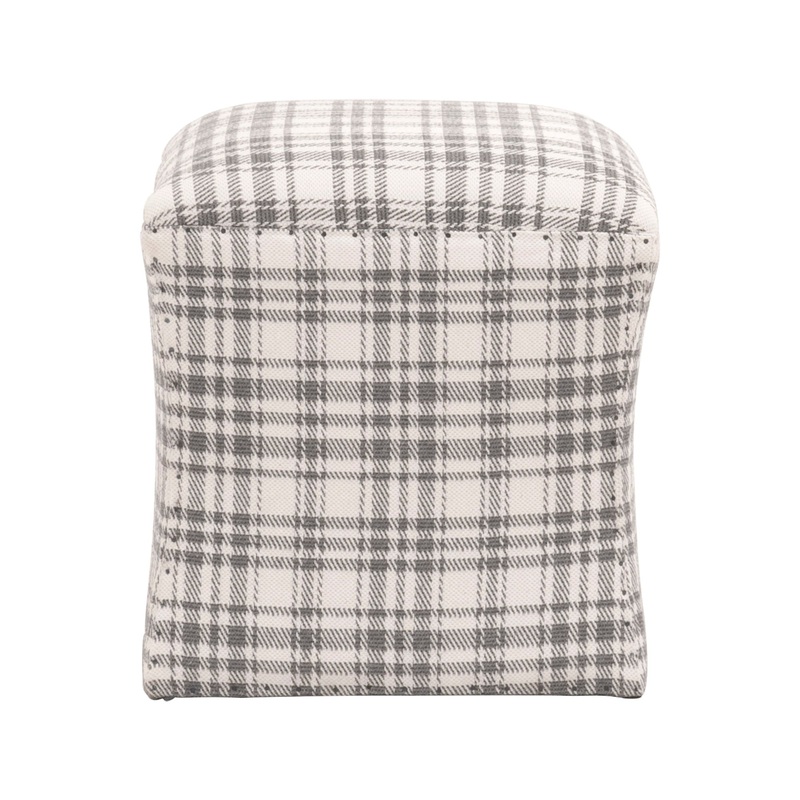 Add additional seating or serving space with this square ottoman. It is fully upholstered with a gorgeous stain-resistant material for easy cleaning and keeping up tidy appearances. The material is a stunning tartan pattern in charcoal gray and white and is accented with black nail tack trim. This ottoman is a mix of farmhouse style and country chic with its plaid pattern and nail tack trimming. You can easily slide it under other furniture, store away, or leave out as accent seating. It is ideal for bedrooms, living rooms, entryways and anywhere additional seating is required. Complete your living space with this beautiful and functional ottoman.