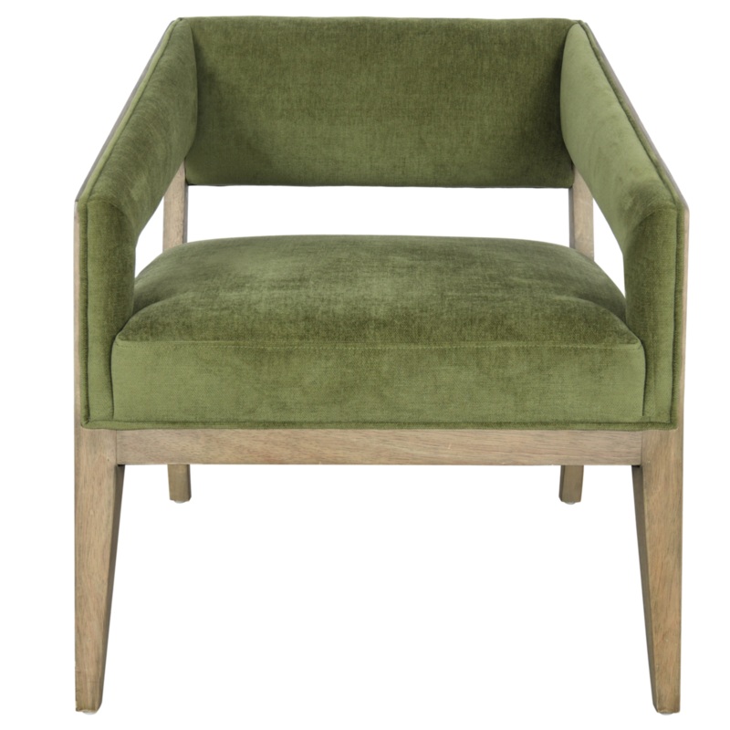 Introducing the Zane Accent Chair, a flawless fusion of elegance and sophistication. Its luscious green upholstery and sculptural design create a soft, luxurious feel that will elevate any space. Experience the art of comfort and style with the Zane Accent Chair, a must-have for any discerning connoisseur.