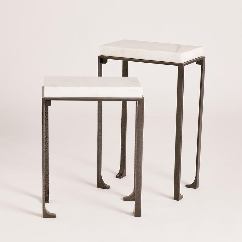 Description: Need a little zen in your space? Our Zen Side Table features a bronze/grey finished iron frame and a unique white honed marble top. Available in two sizes.