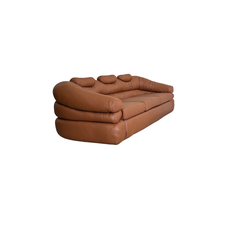 ” Straccio ” by De Pass, D’Urbino, Lomazzi for Zanotta Three Seater Sofa Cognac Leather 1970